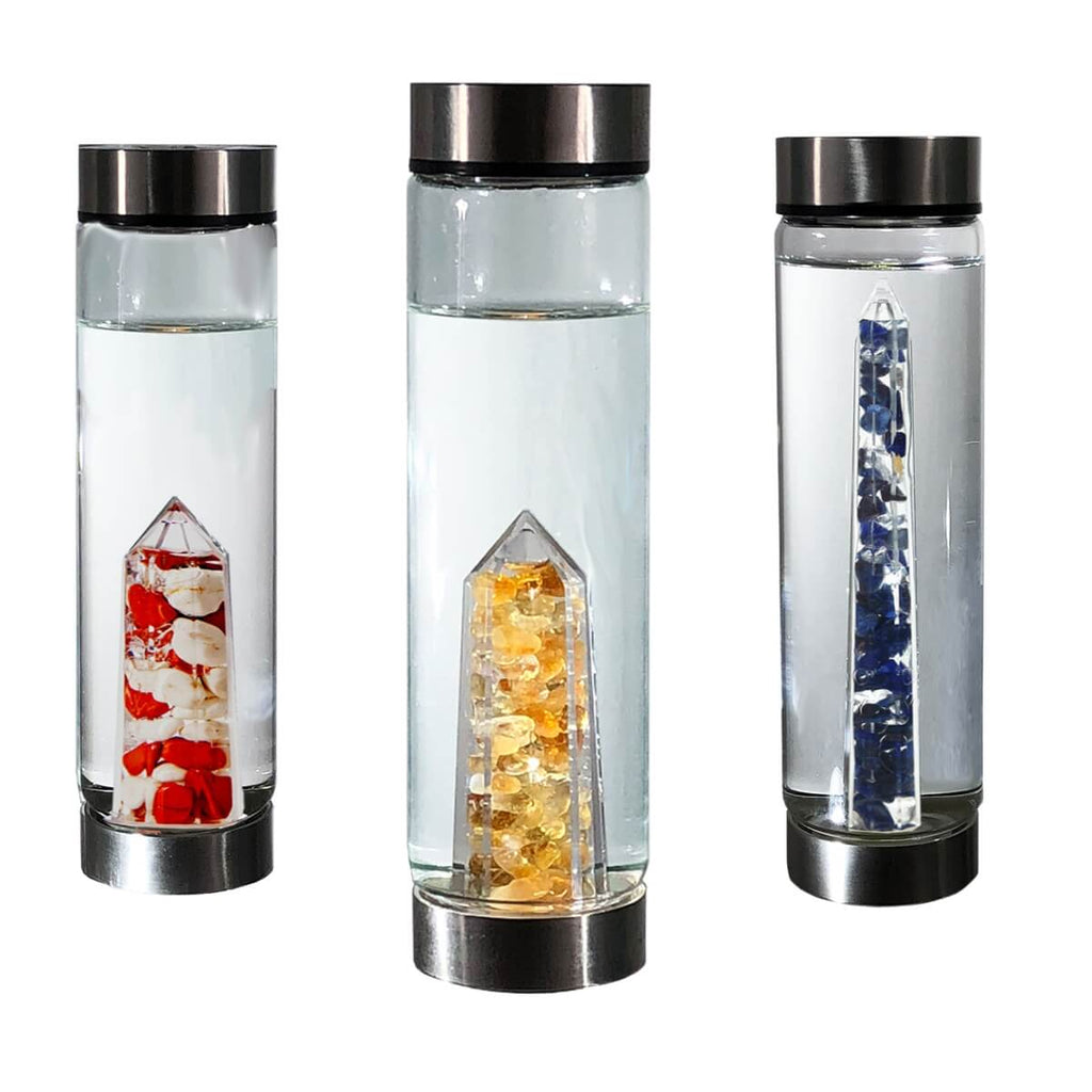Everyone loves our Bewater healing crystal water bottle range, and we are now giving you the opportunity to create your own combination of healing crystals within the chamber inside the bottle. It's a great chance to pick our your favourite crystal styles and combine them with the benefits of drinking water - or you can design a bottle for a friend or a loved one too! You can choose whether the bottle is made of Glass or Tritan BPA free plastic, tall or short style insert and you can select up to three different crystals to be included in the chamber.