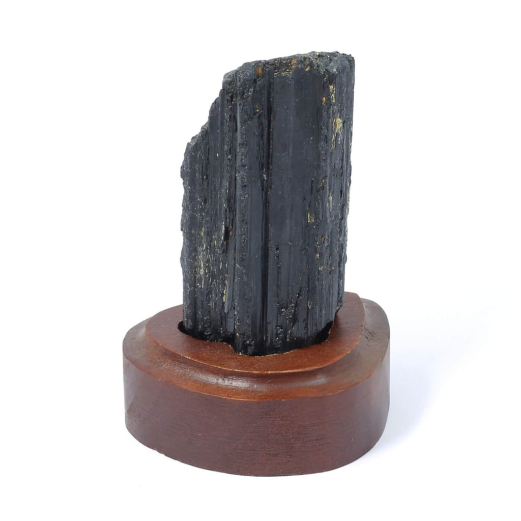 A great chance to own an amazing Black Tourmaline Specimen On Wooden Base - The Shadowguard weighing 144g and measuring 9 cm in height, and 6 cm in width