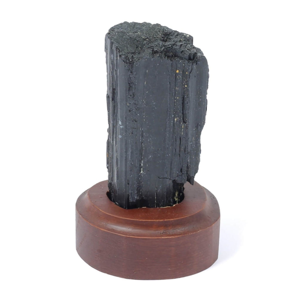 A great chance to own an amazing Black Tourmaline Specimen On Wooden Base - The Shadowguard weighing 145g and measuring 9 cm in height, and 5 cm in width