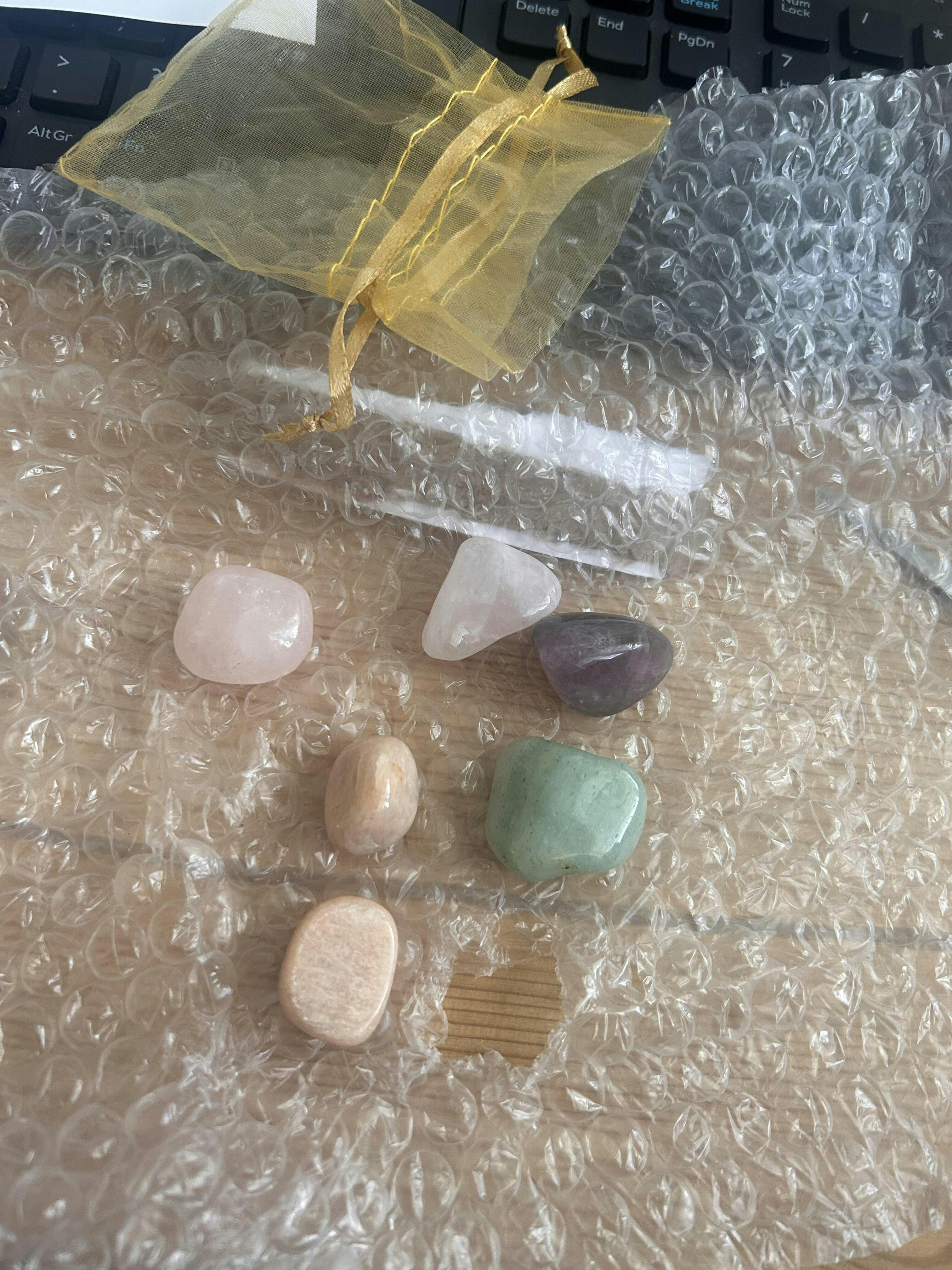 This pack includes 2 x Moonstone Tumblestone, 2 x Rose Quartz Tumblestone, 1 x Aventurine Tumblestone, 1 x Unakite Tumblestone and 1 x Fluorite Tumblestone and comes with a printed guide explaining the various properties of the crystals and instructions on how to get the best out of your pack