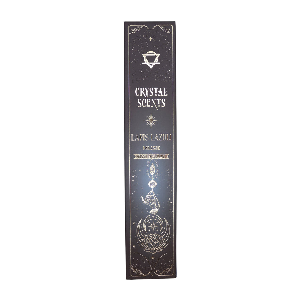 As each stick burns, warm musk notes rise into the air, grounding the senses while encouraging focus and introspection. Lapis lazuli—revered for centuries as a stone of wisdom, truth, and higher understanding—infuses this incense with a calming yet expansive energy, perfect for meditation, self-reflection, or enhancing your spiritual practice.