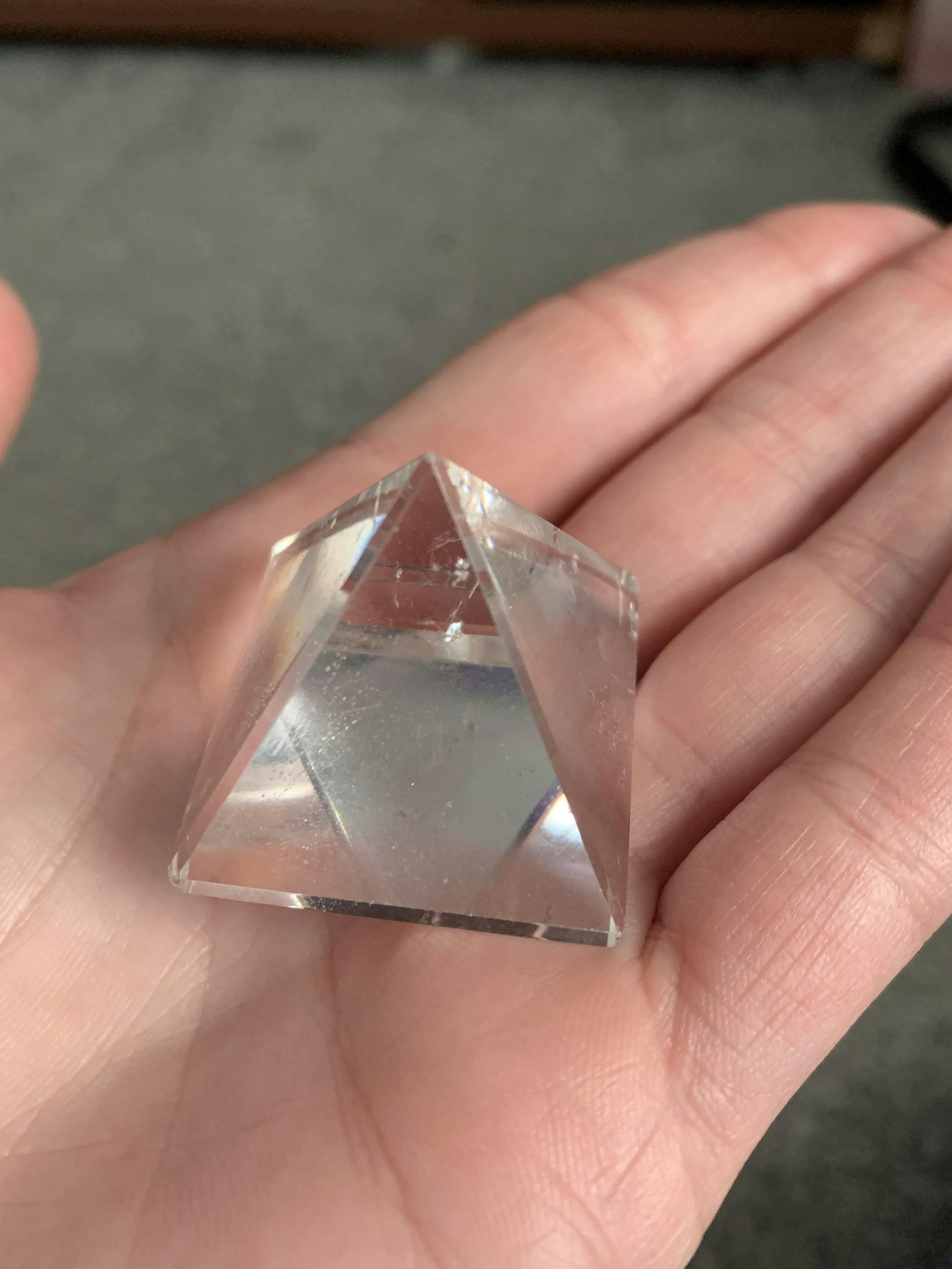 Pyramids have been a sacred shape for thousands of years, dating back to ancient Egypt as they are said to resemble the rays of the descending sun. This pyramid is carved from Clear Quartz and using it's shape will harness high vibrational energy for amplifying your intentions