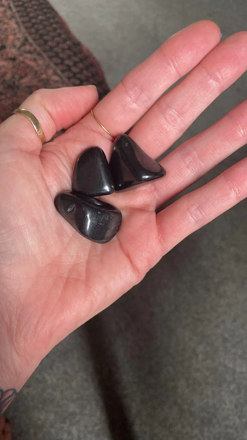 Shungite is a black stone made from mainly carbon. The carbon makes it unusually lighter then most other crystals and also gives it a metallic black colour.