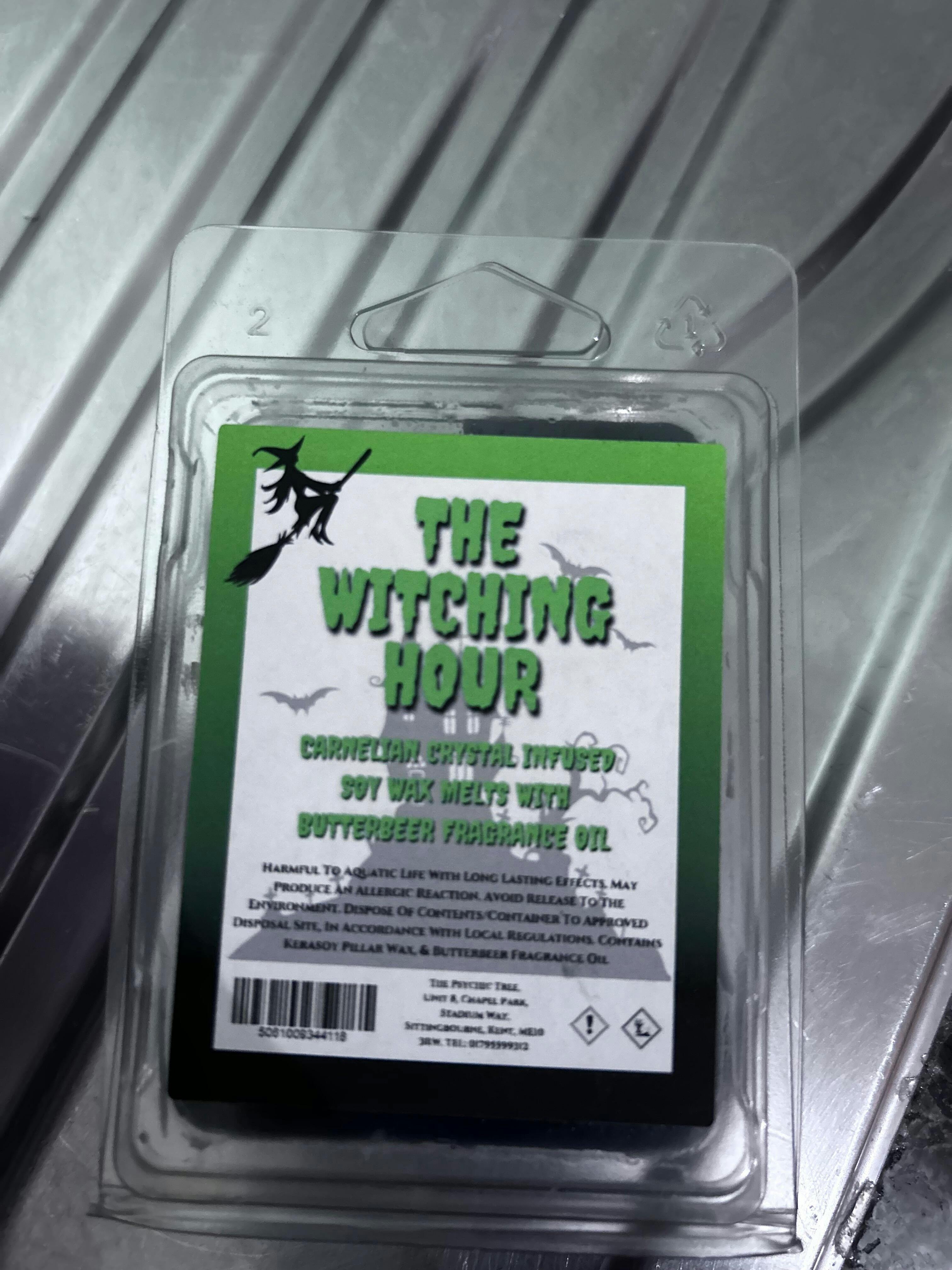 These are a special Halloween edition of our homemade crystal infused wax melts with Carnelian healing crystal chips, and are fragranced with Butterbeer, one of the most popular Halloween and Autumnal scents.