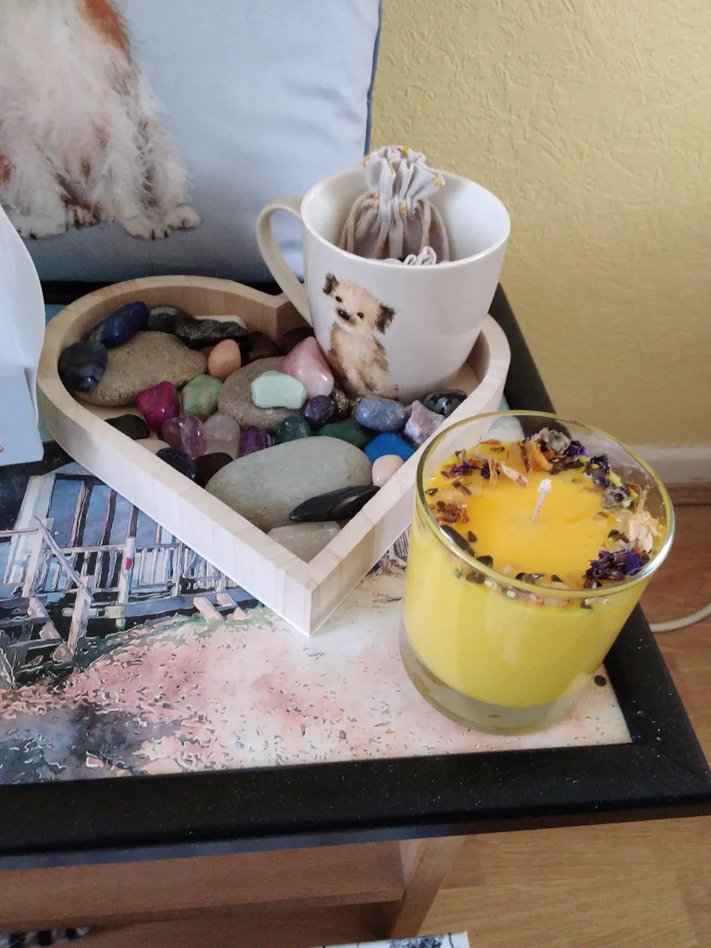 "I suffer with anxiety and I feel to have this candle infused with lovely smells and healing crystals, to remind you that you aren't alone in the world and that no one else is you. You're unique and that is your power and strength. The fragrances work well together and will refresh the mind and is helpful with mental fatigue. Helping you to really get in touch with your Divine self "